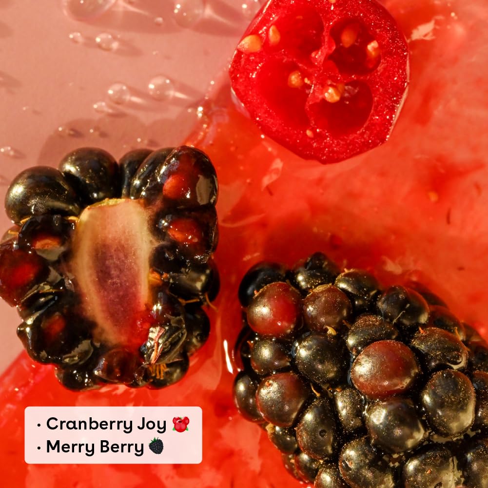 LIMITED EDITION FLAVORS: Cranberry Joy tastes like cranberry nectar and sparkling lemonade while Merry Berry tastes like raspberry slush and blackberry sugar.